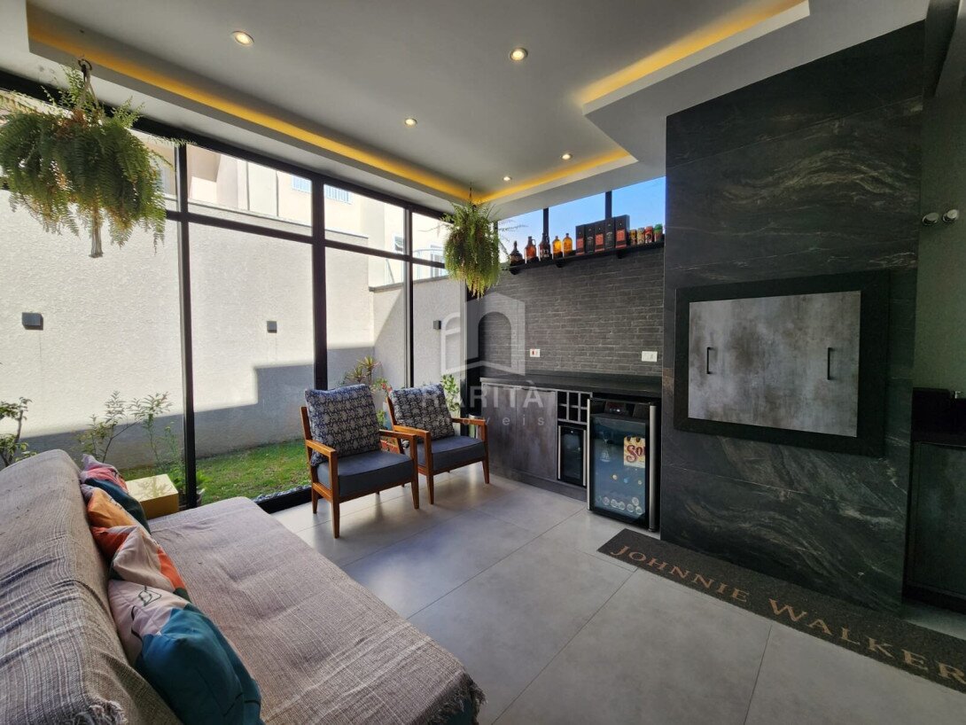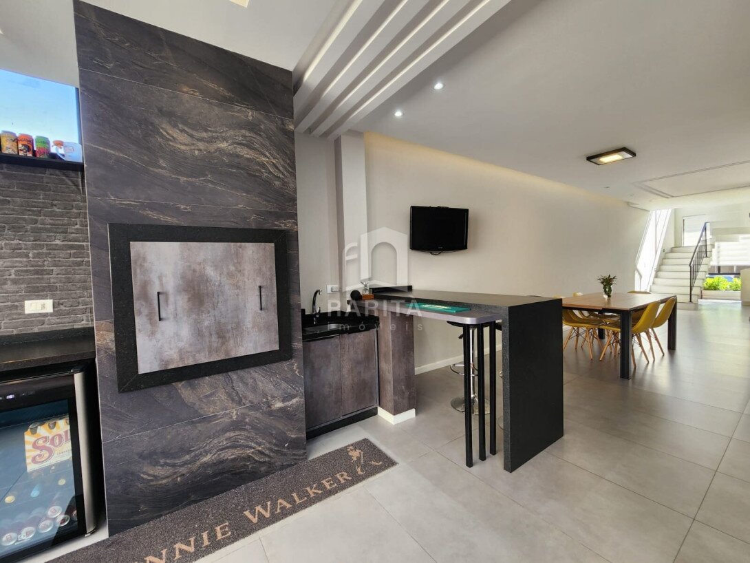 Primeiro Piso: O ponto de encontro perfeito para família e amigos. Uma ampla sala de estar se integra harmoniosamente à cozinha gourmet, criando um ambiente aconghegante. A área se estende para uma churrasqueira e um espaço gourmet privativo, com um belo jardim, ideal para seu pet ou para relaxar ao ar livre.
